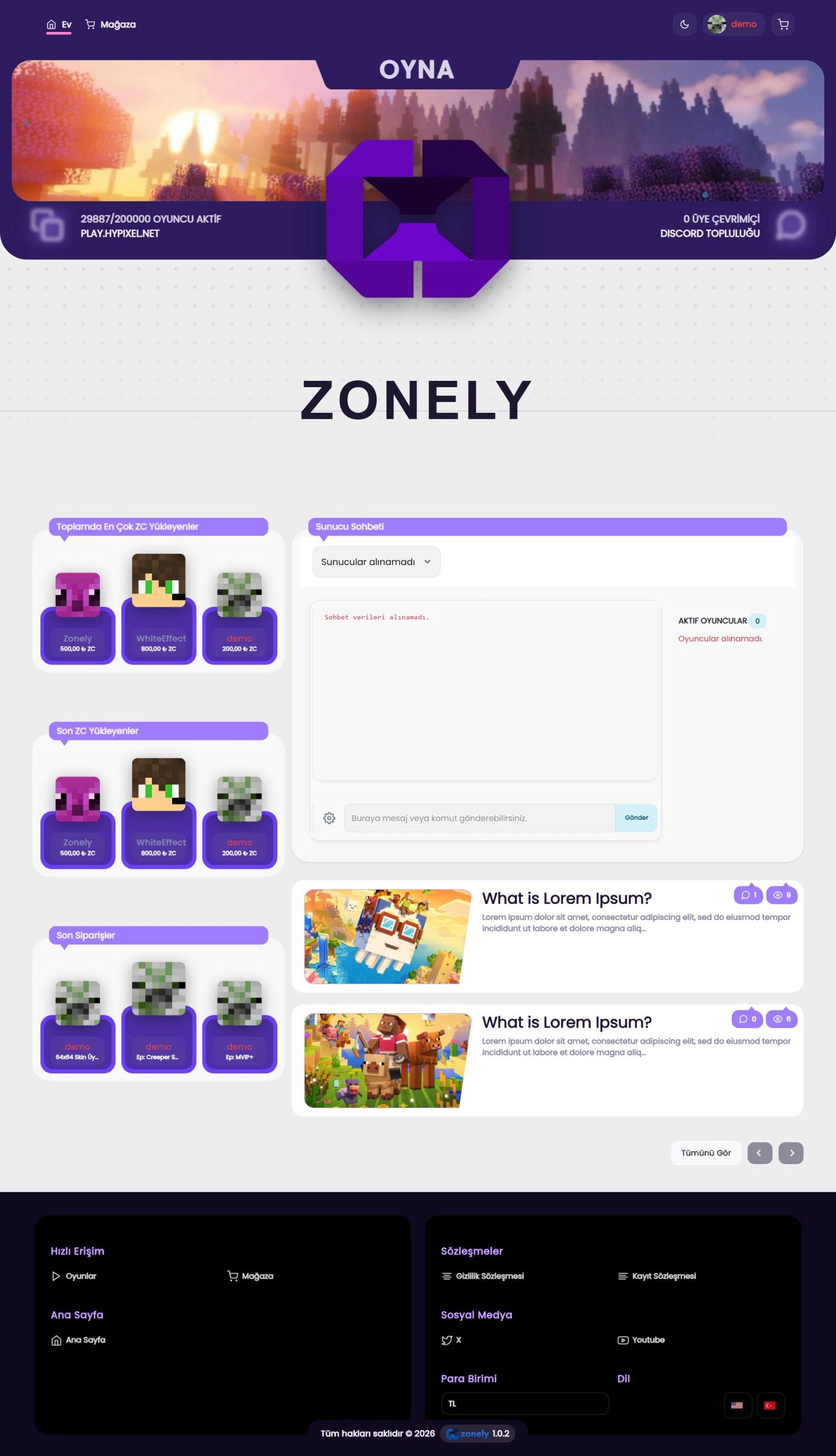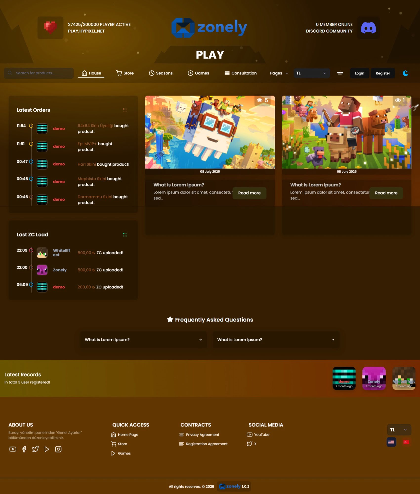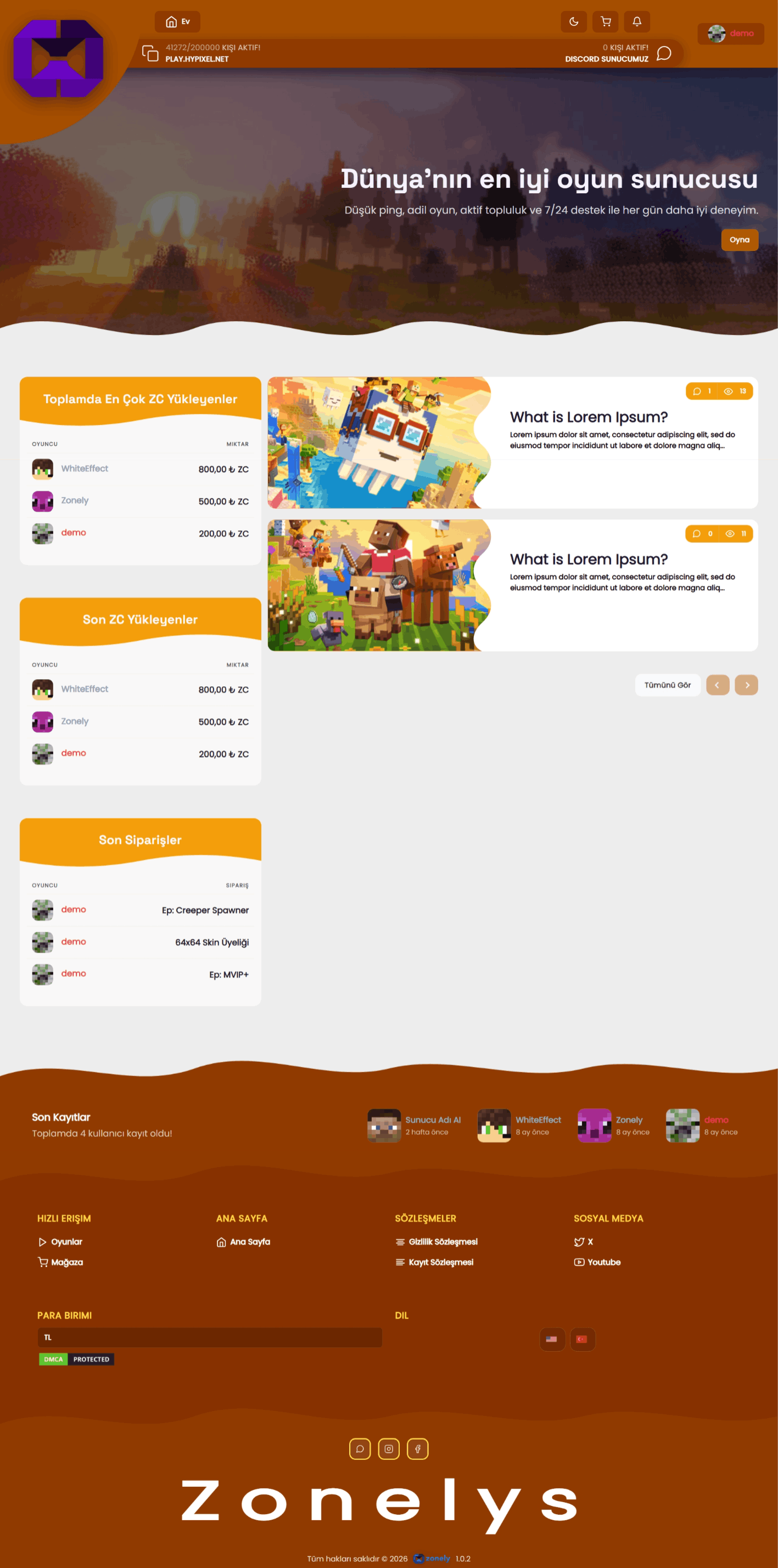 Zonely offers a wide range of solutions, from game servers to digital product sales, from hosting services to promotional sites.